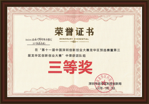 公司項目獲得2019年深圳市專精特新企業創新創業大賽獎項